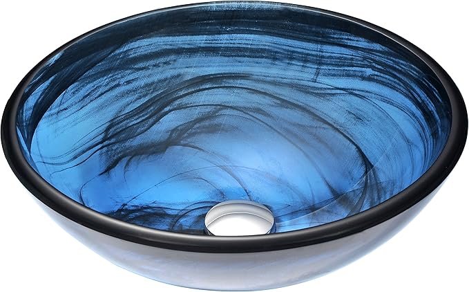 - Water Spots: As with many glass vessel sinks, the Sapphire Wisp design may show water spots or fingerprints, requiring regular cleaning to maintain its vibrant appearance.
