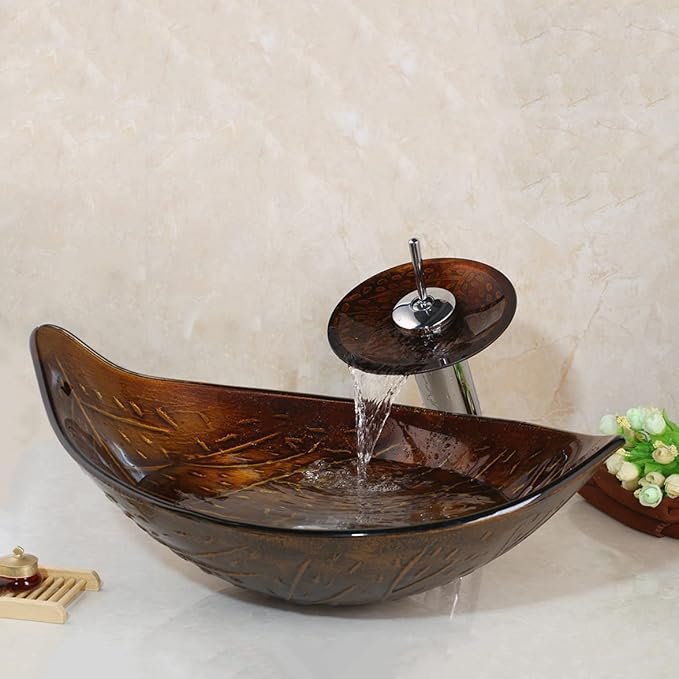 - Leaf-Shaped Tempered Glass Sink: The bowl’s leaf-inspired design adds an organic, sculptural element to your bathroom, while the tempered glass ensures durability.