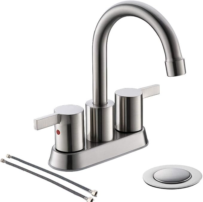 The faucet comes with a brushed nickel finish, which provides a subtle sheen and a timeless, sophisticated look. This finish resists fingerprints, water spots, and corrosion, ensuring the faucet maintains its fresh appearance for years to come.4-Inch Centerset Design:
