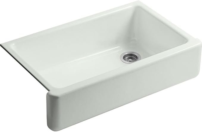 KOHLER K-6489-FF Whitehaven Farmhouse Self-Trimming Apron Front Single Basin Sink with Tall Apron, Sea Salt