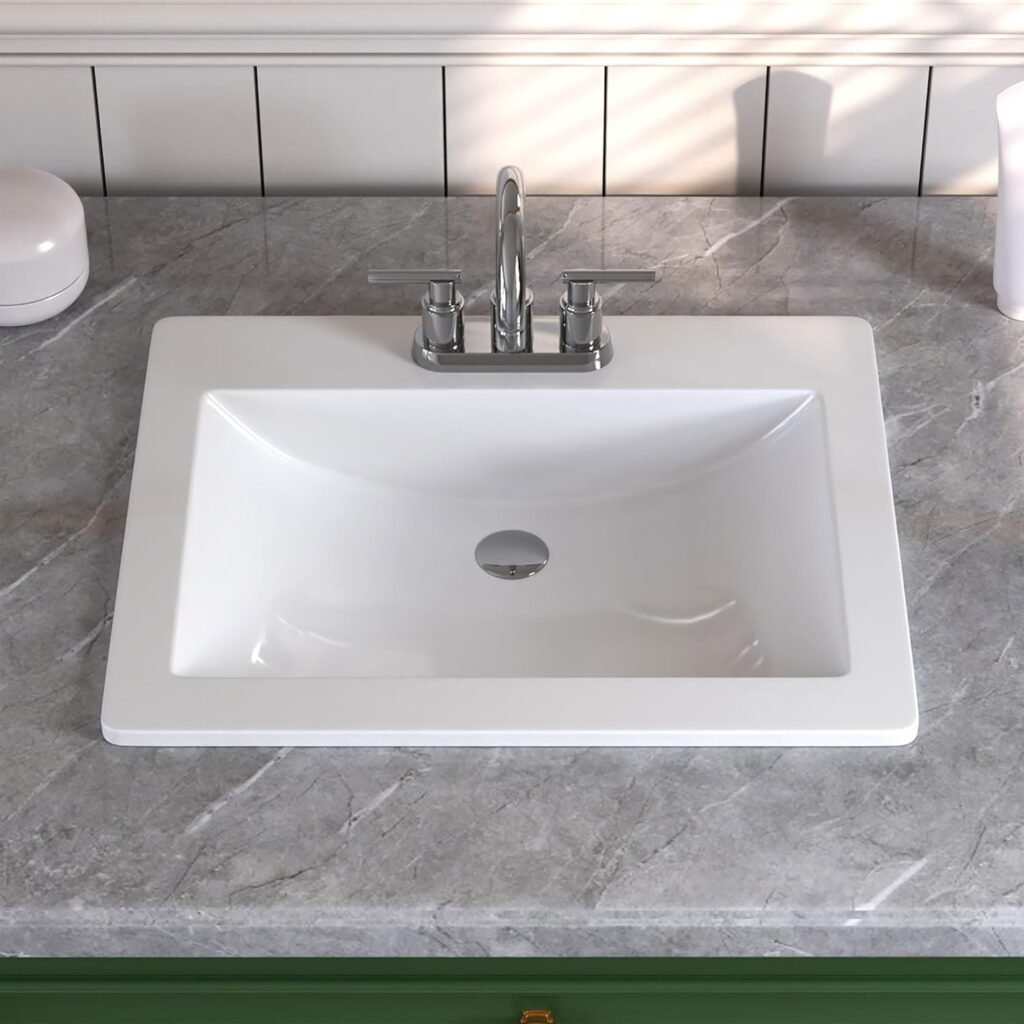 The Deervally DV-1DS0122 is a 21″ x 18″ rectangular drop-in bathroom sink crafted from high-quality ceramic, designed to offer both durability and aesthetic appeal.
