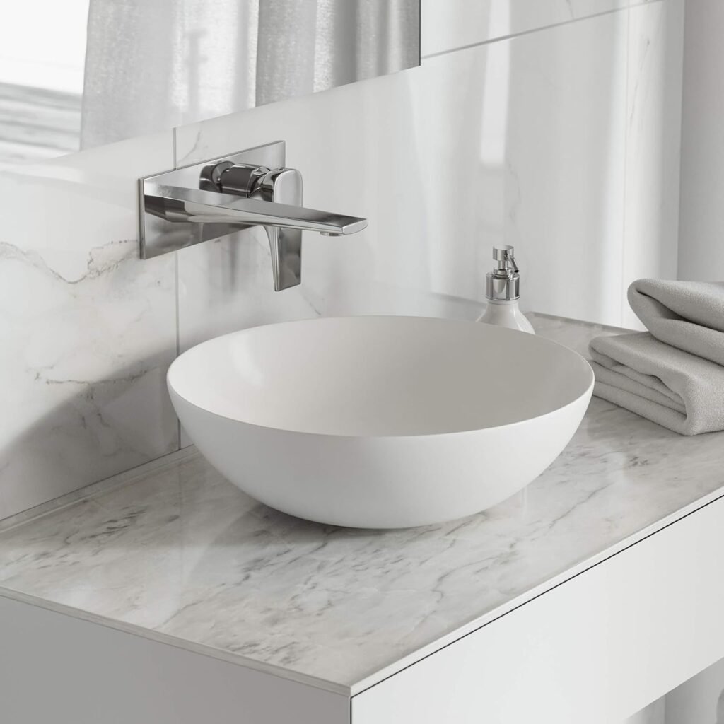 Its compact size and above-counter installation make it suitable for bathrooms of all sizes, including space-conscious layouts.