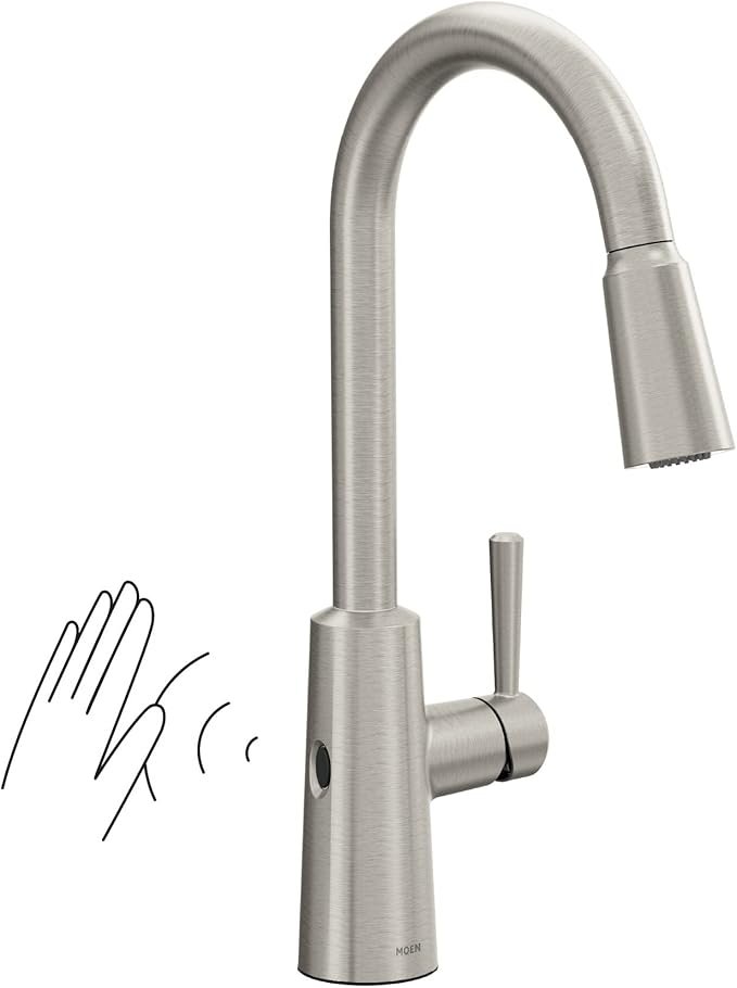 Equipped with Moen’s MotionSense Wave™ technology, this faucet allows you to turn water on and off with a simple wave of your hand. This touchless functionality is ideal for busy kitchens, minimizing the need to touch the faucet handle when your hands are messy or full. The sensor is highly responsive and provides a seamless user experience.Pull-Down Spray Head