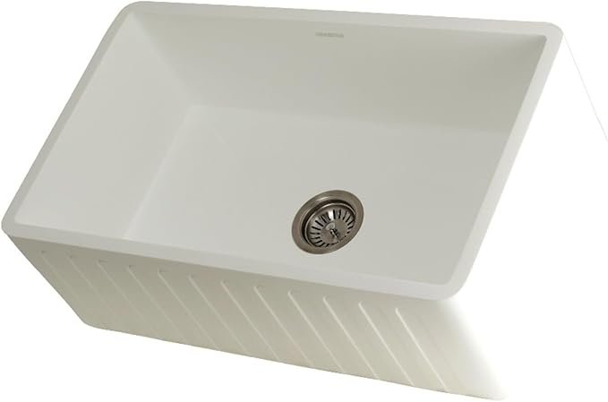The Kingston Brass Farmhouse Solid Surface White Stone 30-Inch Single Bowl Kitchen Sink is a fantastic option for those who value style, functionality, and durability. Its solid surface stone construction ensures long-lasting performance, while the apron-front design adds timeless charm to your kitchen.