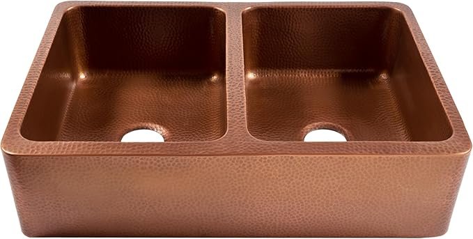 The Lange Copper Farmhouse Sink features a classic apron-front design, providing an eye-catching focal point for your kitchen. The 32-inch width and double-bowl configuration offer ample workspace while maintaining a balanced size that fits well in medium to large kitchens.