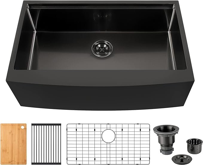 The 33 Inch Black Farmhouse Sink is a versatile and stylish addition to any kitchen, offering both functionality and aesthetic appeal. Made with 12-gauge stainless steel, this sink is built for durability, while its matte black finish adds a modern, sleek look that complements a variety of kitchen designs. With a workstation ledge and included accessories like a cutting board, it’s designed to streamline meal prep and cleanup, making it a great choice for busy households or avid home cooks.
