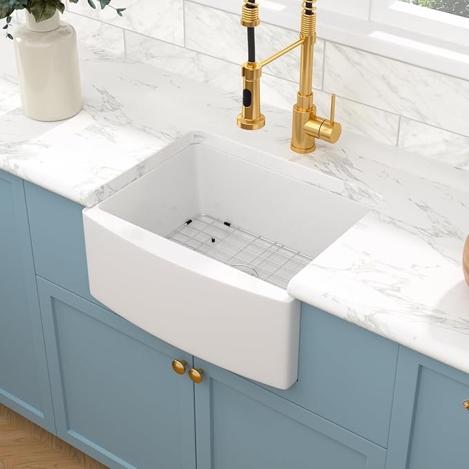 The SARLAI 24″ White Farmhouse Sink is a compact yet stylish solution for kitchens or laundry rooms that demand both functionality and elegance. Crafted from durable fireclay with a classic porcelain finish, this 24-inch apron front single bowl sink is perfect for small spaces while delivering the timeless charm farmhouse sinks are known for. Here’s a closer look at why this sink is an excellent choice for those seeking a blend of practicality and aesthetics in their home.
