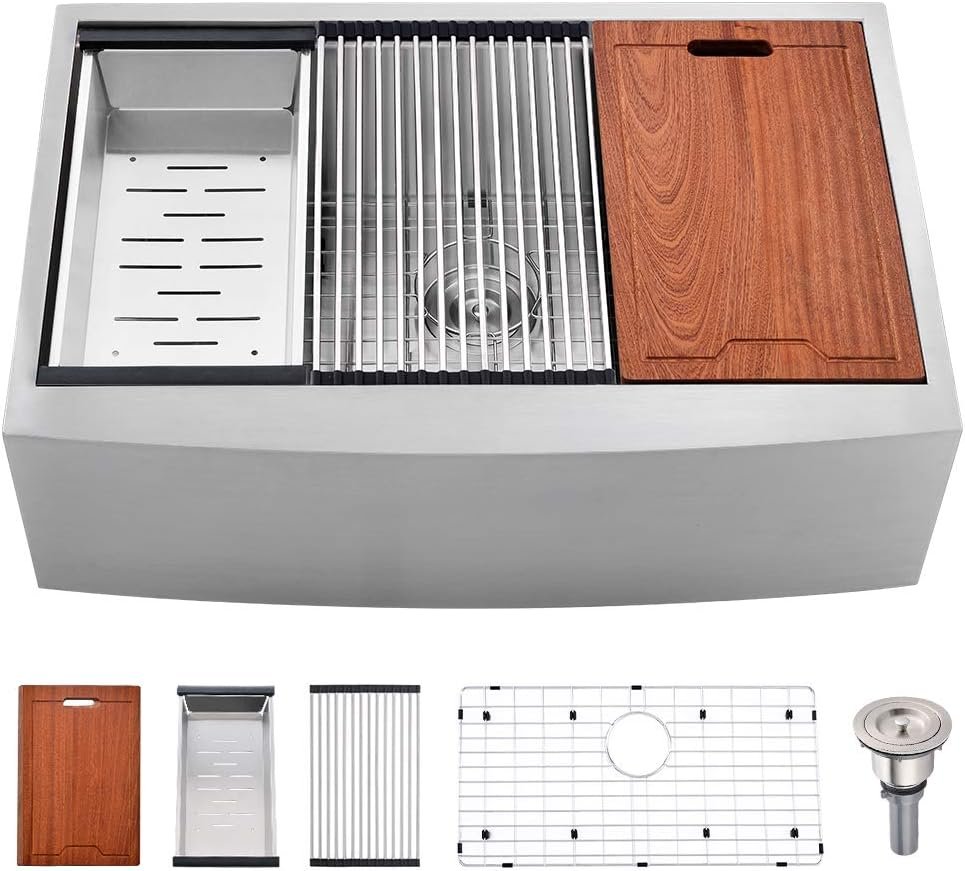 The Bokaiya 33″ Farmhouse Sink Workstation is an excellent blend of form and function, offering a durable, spacious, and versatile solution for modern kitchens. Its premium stainless steel construction, workstation accessories, and sleek design make it a standout choice for homeowners looking to upgrade their kitchen with a high-performance sink.